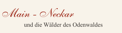 Bad König - Vielbrunn - Haingrund - Laudenbach - Klingenberg - Kloster Engelberg (Großheubach) - Miltenberg - Walldürn - Eberstadter Tropfsteinhöhle - Bödigheim - Mudau - Oberscheidental - Oberdielbach - Schollbrunn - Neckargerach - Zwingenberg - Eberbach - Hirschhorn - Affolterbach - Beerfurth - Vierstöck - Langenbrombach - Bad König